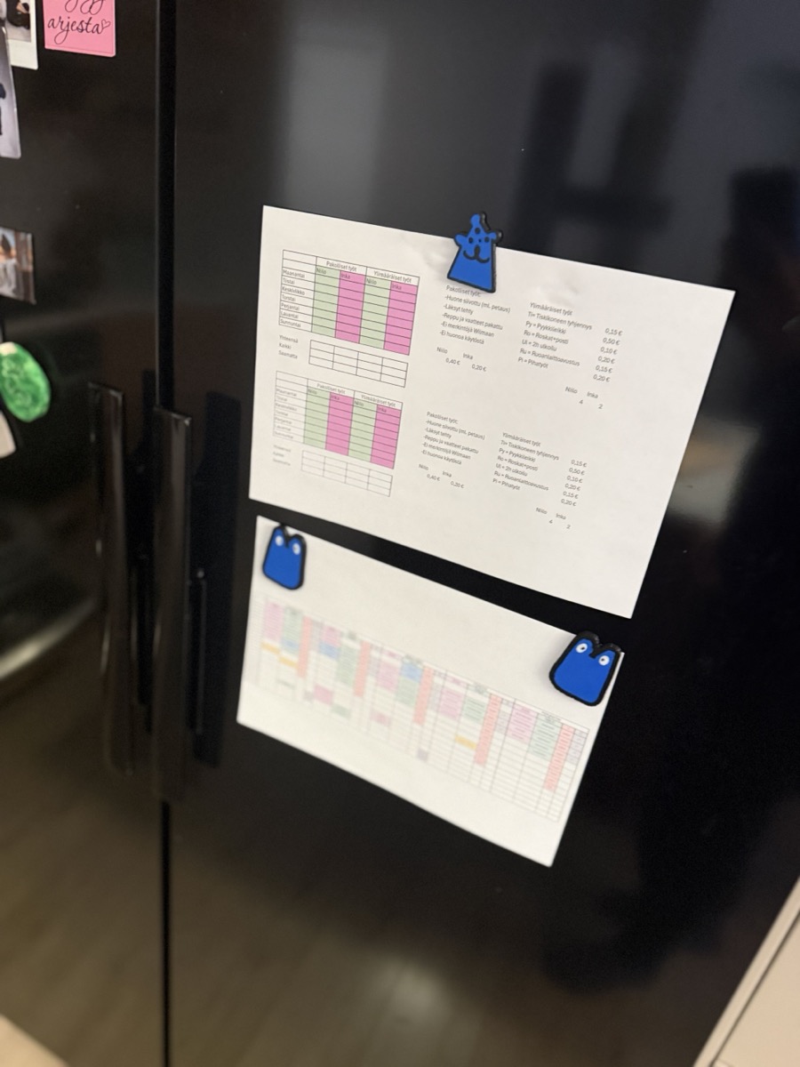 Vi provade papperslistor på kylskåpet. De fungerade i ungefär två veckor innan de blev tapet som alla ignorerade.